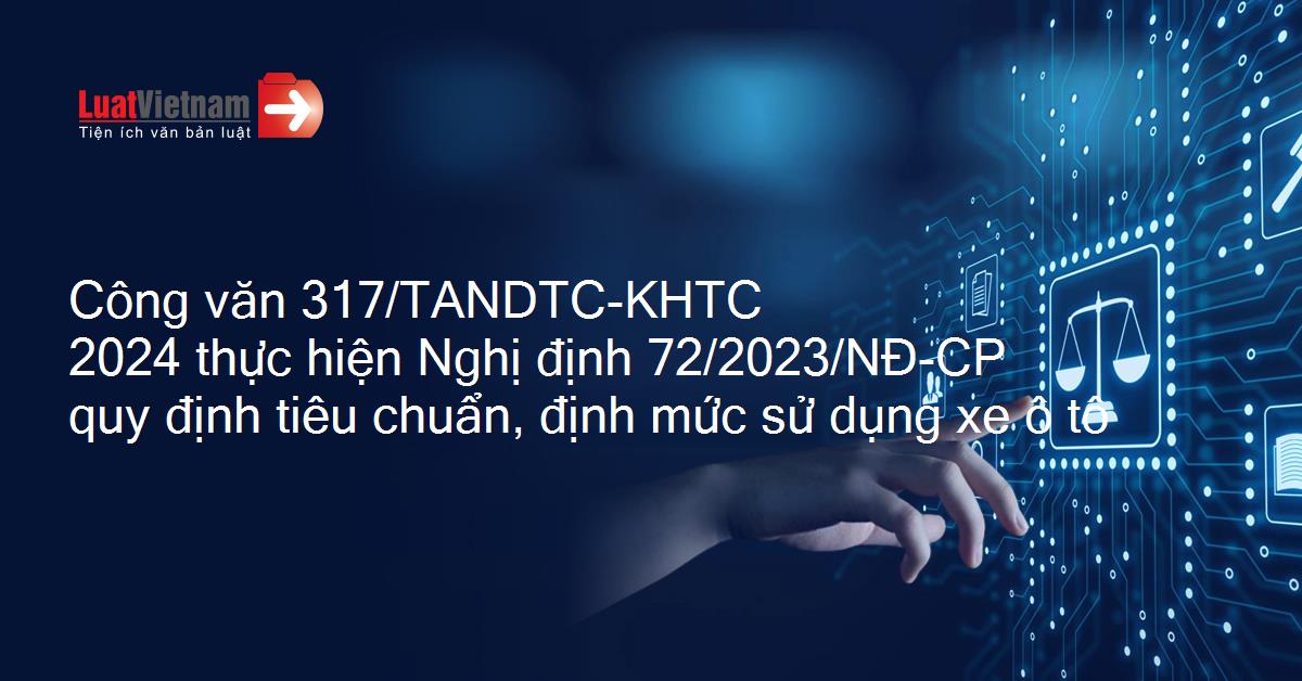 Công văn 317/TANDTC-KHTC 2024 thực hiện Nghị định 72/2023/NĐ-CP quy định tiêu chuẩn, định mức sử dụng xe ô tô