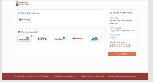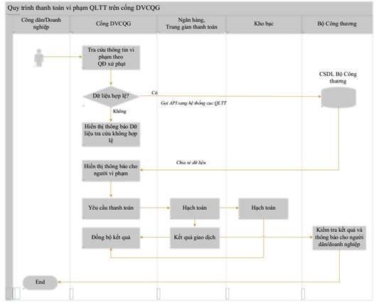 Khi người dùng đã tra cứu được quyết định xử phạt, sẽ thực hiện thanh toán, khi đó thực hiện theo quy trình thanh toán được mô tả ở mục II.2 Quy trình thanh toán trên Hệ thống thanh toán của Cổng Dịch vụ công quốc gia.