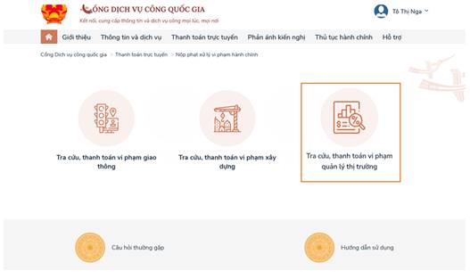 - Tuyên truyền, hướng dẫn các cá nhân, tổ chức trên địa bàn thực hiện thanh toán trực tuyến Nộp phạt xử lý vi phạm hành chính trong lĩnh vực quản lý thị trường trên Cổng Dịch vụ công quốc gia (Hướng dẫn cách thực hiện thanh toán trực tuyến tại Phụ lục 2 kèm theo) theo lộ trình triển khai của Bộ Công Thương; bảo đảm chỉ tiêu về thanh toán trực tuyến theo chỉ đạo của Chính phủ[2].