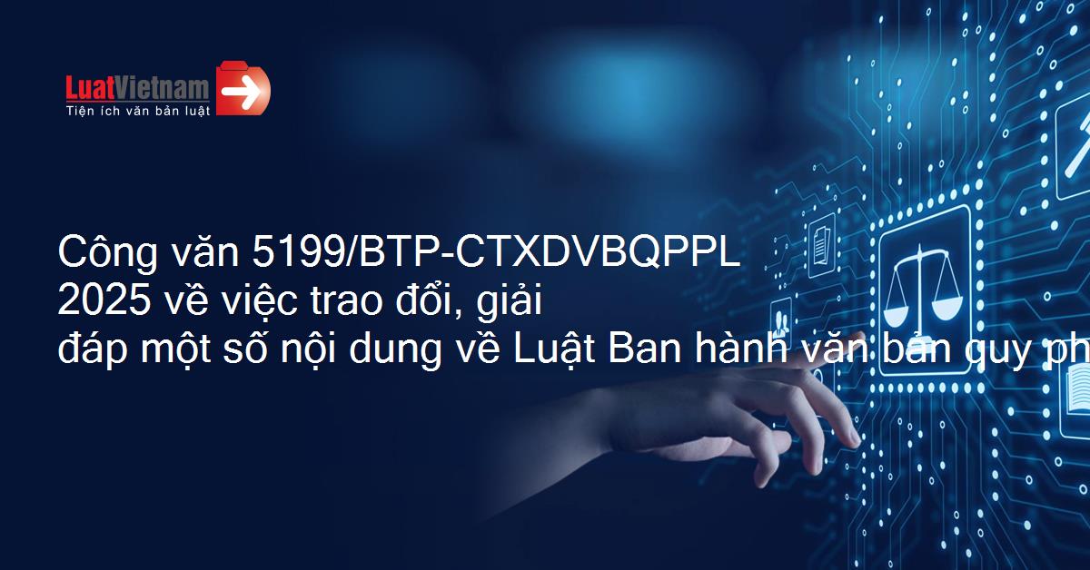Công văn 5199/BTP-CTXDVBQPPL 2025 về việc trao đổi, giải đáp một số nội dung về Luật Ban hành văn bản quy phạm pháp luật và nghị định hướng dẫn