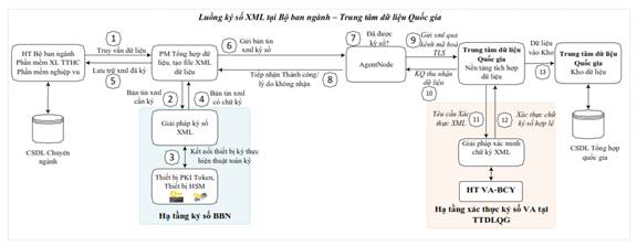 | 4 | Sử dụng công cụ ký số gọi dịch vụ truyền file của AgentNode để truyền file XML đã ký về TTDLQG | Phối hợp hỗ trợ kỹ thuật (nếu cần). |