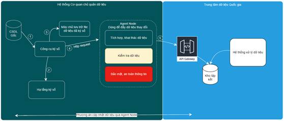Bước 5: AgentNode thực hiện các hoạt động kiểm tra dữ liệu, sau đó thông qua các chức năng xử lý để cập nhật dữ liệu thay đổi vào Kho tập kết (chi tiết tại mục II.4). Nền tảng tích hợp khi tiếp nhận dữ liệu sẽ dựa trên các sự kiện và khóa (key) ở Bước 1 để quyết định việc ghi dữ liệu vào Kho dữ liệu của TTDLQG.