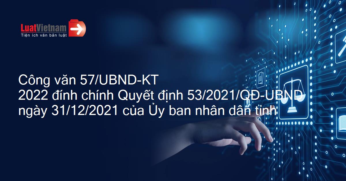 Công văn 57/UBND-KT 2022 đính chính Quyết định 53/2021/QĐ-UBND ngày 31/12/2021 của Ủy ban nhân dân tỉnh