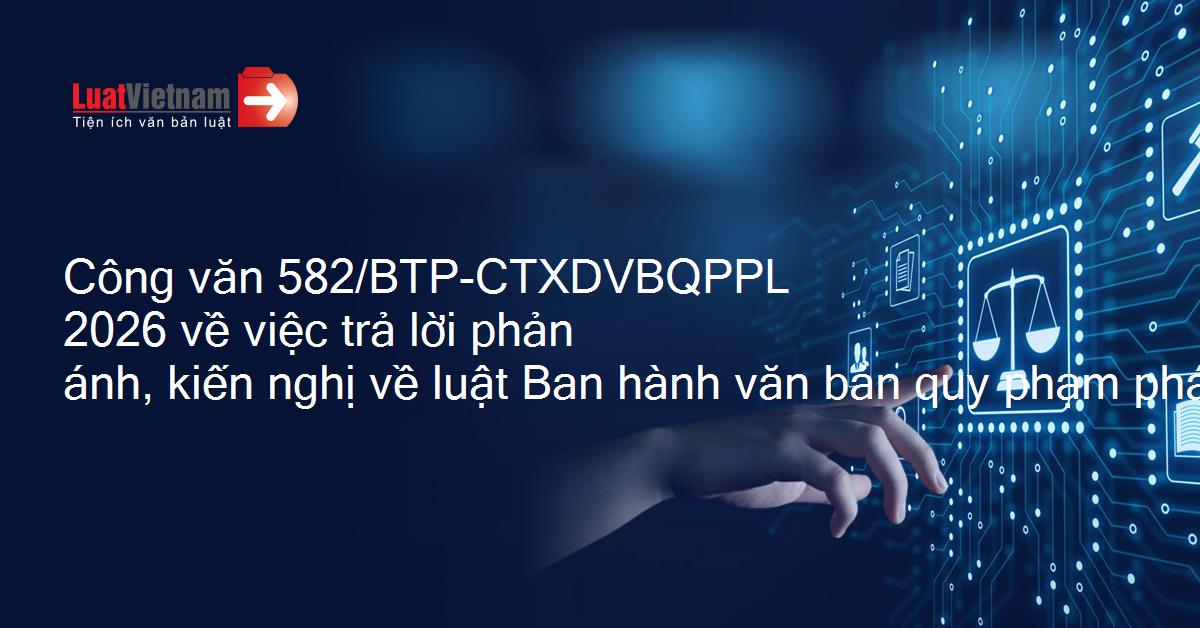 Công văn 582/BTP-CTXDVBQPPL 2026 về việc trả lời phản ánh, kiến nghị về luật Ban hành văn bản quy phạm pháp luật