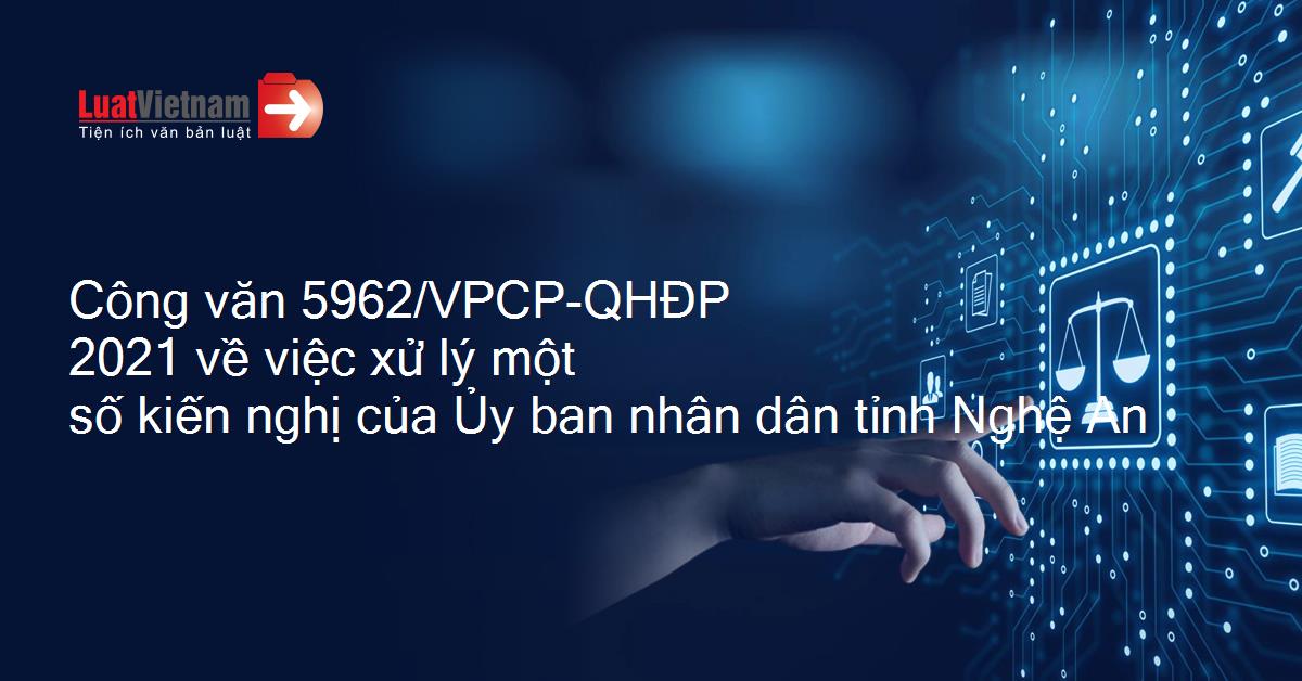 Công văn 5962/VPCP-QHĐP 2021 về việc xử lý một số kiến nghị của Ủy ban nhân dân tỉnh Nghệ An