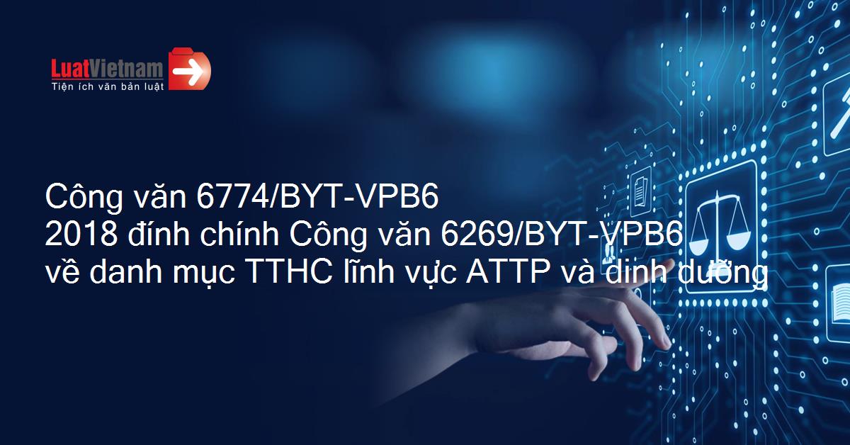 Công văn 6774/BYT-VPB6 2018 đính chính Công văn 6269/BYT-VPB6 về danh mục TTHC lĩnh vực ATTP và dinh dưỡng