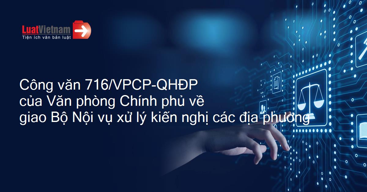 Công văn 716/VPCP-QHĐP của Văn phòng Chính phủ về giao Bộ Nội vụ xử lý kiến nghị các địa phương