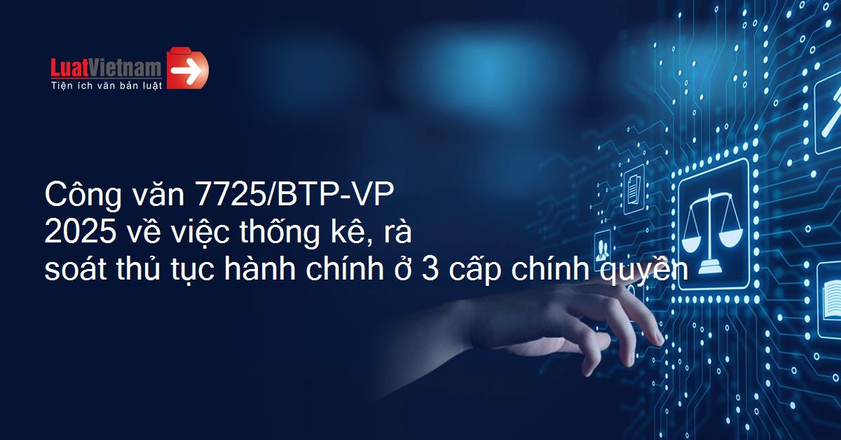 Công văn 7725/BTP-VP 2025 về việc thống kê, rà soát thủ tục hành chính ở 3 cấp chính quyền