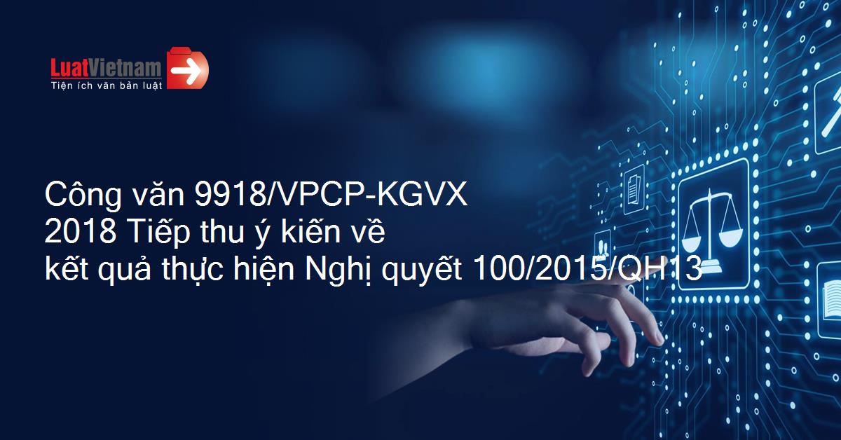 Công văn 9918/VPCP-KGVX 2018 Tiếp thu ý kiến về kết quả thực hiện Nghị quyết 100/2015/QH13