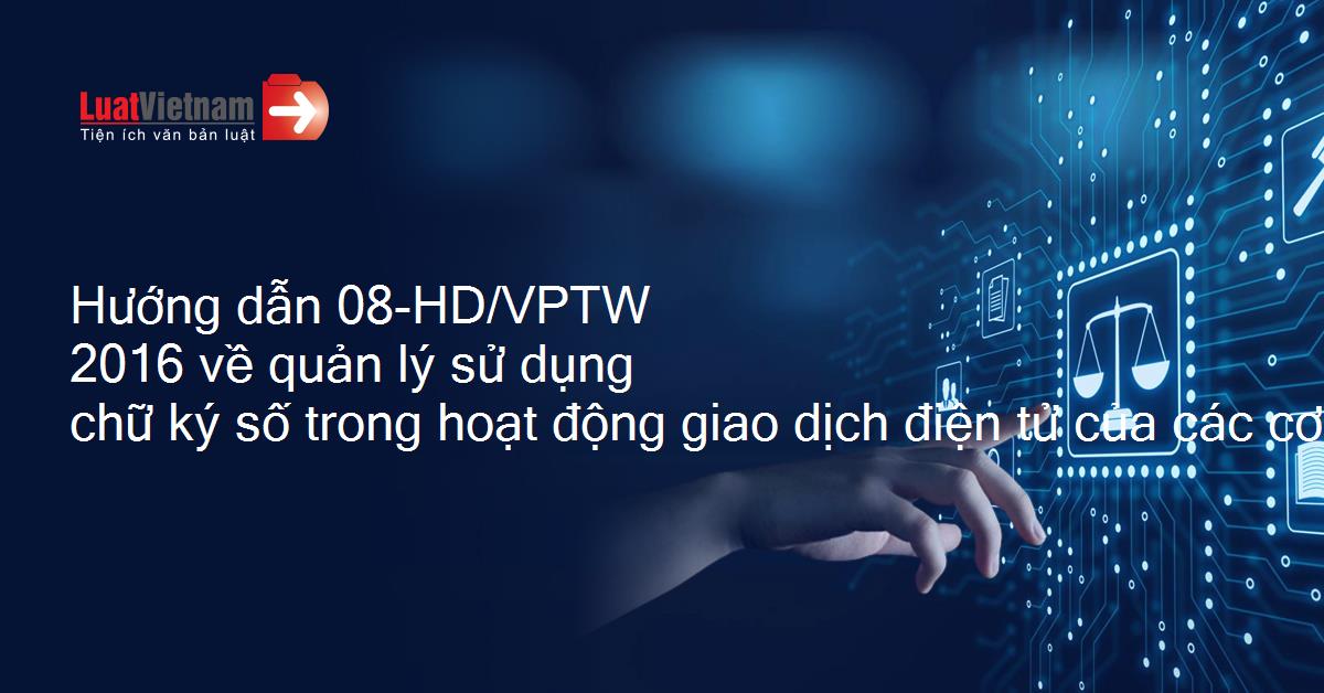 Hướng dẫn 08-HD/VPTW 2016 về quản lý sử dụng chữ ký số trong hoạt động giao dịch điện tử của các cơ quan đảng
