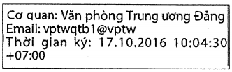 - Email: địa chỉ hòm thư trên mạng thông tin diện rộng cơ quan Đảng của người ký số.