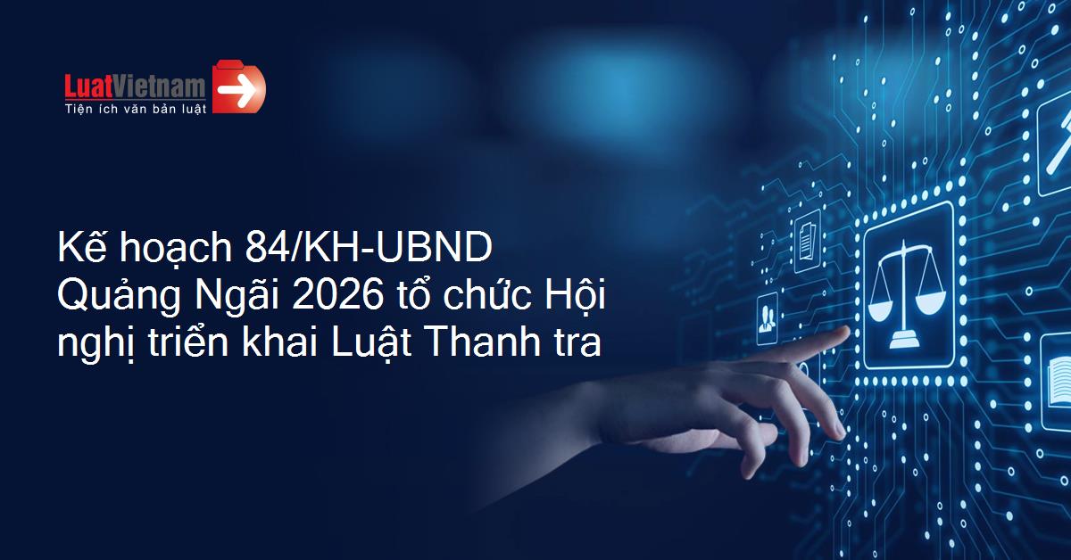 Kế hoạch 84/KH-UBND Quảng Ngãi 2026 tổ chức Hội nghị triển khai Luật Thanh tra