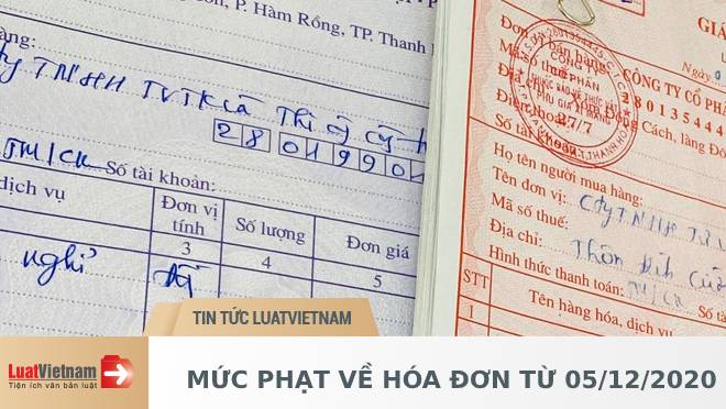 Lưu ý: Đối với hành vi vi phạm hành chính về hóa đơn diễn ra trước ngày 05/12/2020 nhưng kết thúc kể từ ngày 05/12/2020 thì áp dụng văn bản quy định về phạt vi phạm hành chính có hiệu lực tại thời điểm thực hiện hành vi vi phạm.