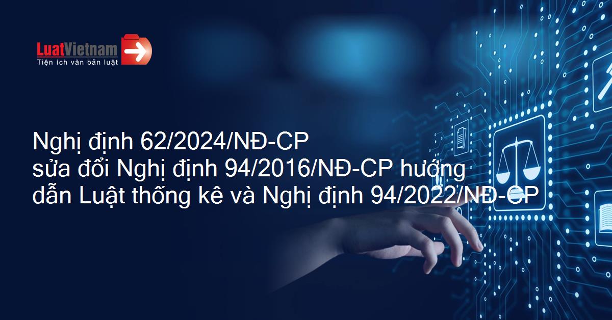 Nghị định 62/2024/NĐ-CP sửa đổi Nghị định 94/2016/NĐ-CP hướng dẫn Luật thống kê và Nghị định 94/2022/NĐ-CP