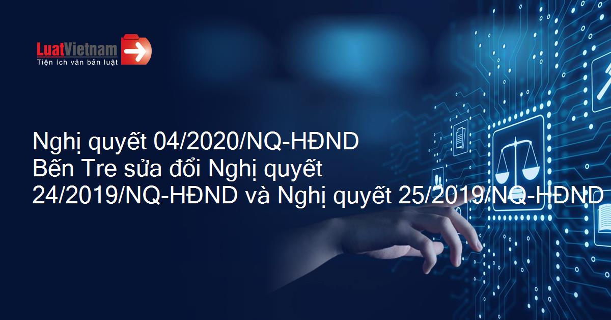 Nghị quyết 04/2020/NQ-HĐND Bến Tre sửa đổi Nghị quyết 24/2019/NQ-HĐND và Nghị quyết 25/2019/NQ-HĐND của Hội đồng nhân dân tỉnh