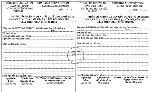Thủ tục hành chính về cấp, gia hạn, sửa đổi, bổ sung, trả lại, cấp lại Giấy phép nhận chìm ở biển |