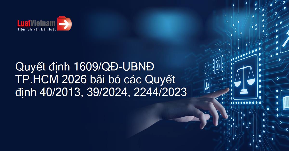 Quyết định 1609/QĐ-UBNĐ TP.HCM 2026 bãi bỏ các Quyết định 40/2013, 39/2024, 2244/2023