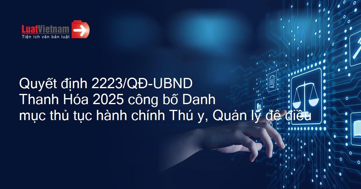 Quyết định 2223/QĐ-UBND Thanh Hóa 2025 công bố Danh mục thủ tục hành chính Thú y, Quản lý đê điều