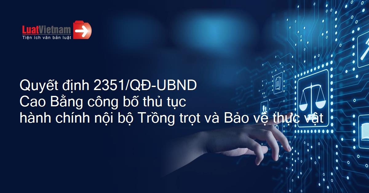 Quyết định 2351/QĐ-UBND Cao Bằng công bố thủ tục hành chính nội bộ Trồng trọt và Bảo vệ thực vật