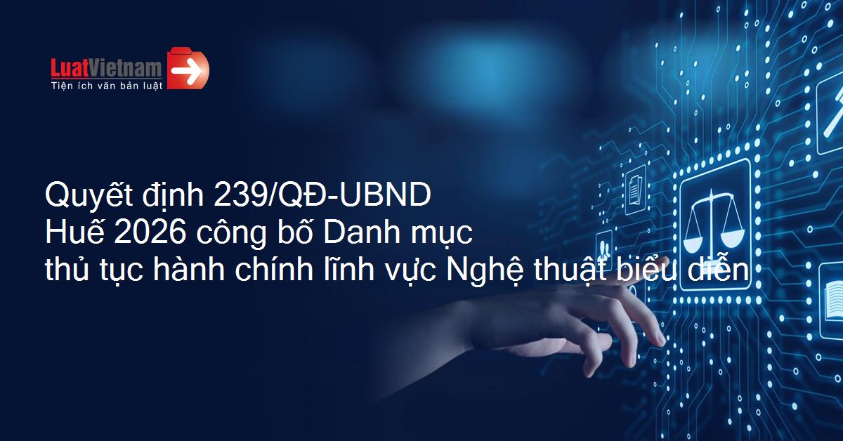 Quyết định 239/QĐ-UBND Huế 2026 công bố Danh mục thủ tục hành chính lĩnh vực Nghệ thuật biểu diễn
