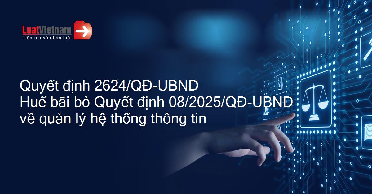 Quyết định 2624/QĐ-UBND Huế bãi bỏ Quyết định 08/2025/QĐ-UBND về quản lý hệ thống thông tin