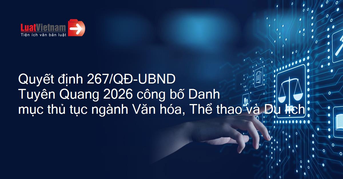 Quyết định 267/QĐ-UBND Tuyên Quang 2026 công bố Danh mục thủ tục ngành Văn hóa, Thể thao và Du lịch