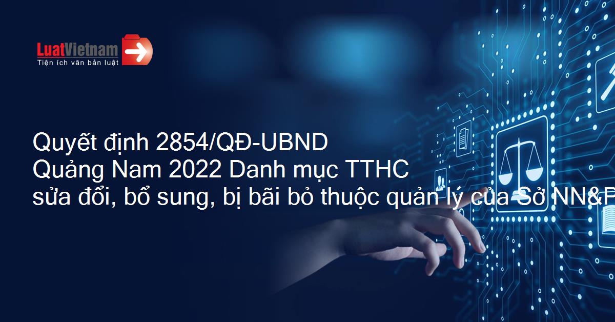 Quyết định 2854/QĐ-UBND Quảng Nam 2022 Danh mục TTHC sửa đổi, bổ sung, bị bãi bỏ thuộc quản lý của Sở NN&PTNT