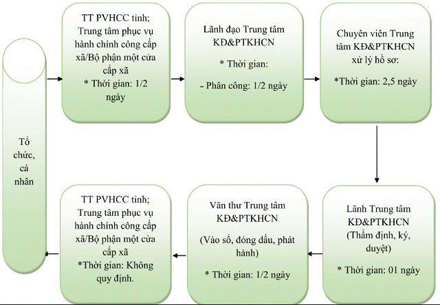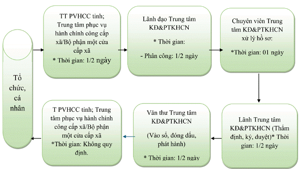 | 2 | Cấp Giấy chứng nhận văn phòng đại diện, chi nhánh của tổ chức khoa học và công nghệ * Thời gian thực hiện: - Mười (10) ngày làm việc kể từ ngày nhận được hồ sơ hợp lệ Mã TTHC: 1.014391.H35 |