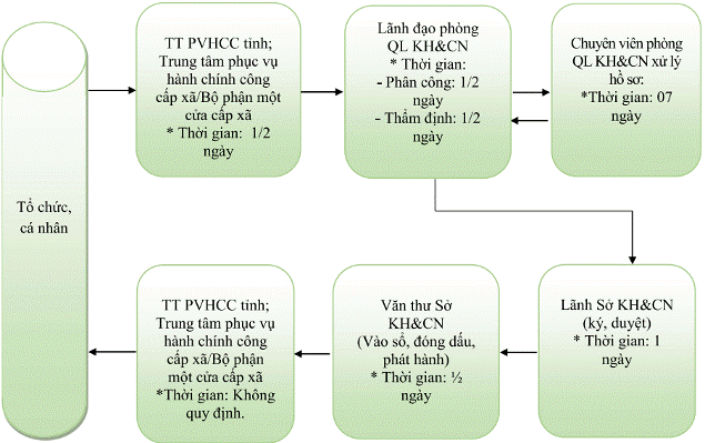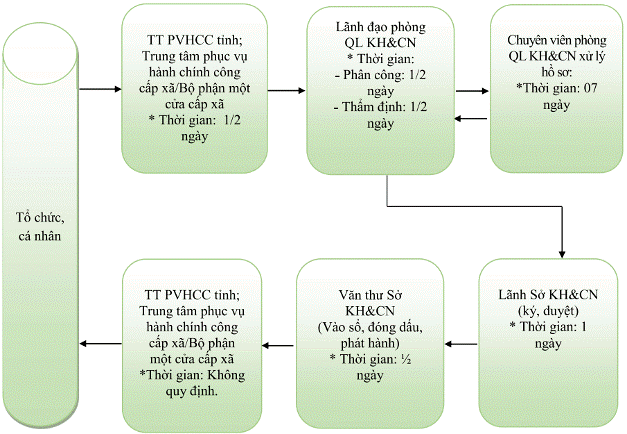 | 1 | Đăng ký kết quả thực hiện nhiệm vụ khoa học và công nghệ cấp tỉnh, cấp cơ sở sử dụng ngân sách nhà nước và nhiệm vụ khoa học và công nghệ do quỹ của Nhà nước trong lĩnh vực khoa học và công nghệ tài trợ thuộc phạm vi quản lý của tỉnh, thành phố trực thuộc trung ương Thời gian thực hiện: 03 ngày làm việc kể từ ngày nhận đủ hồ sơ hợp lệ Mã TTHC: 1.014459.H35 |
