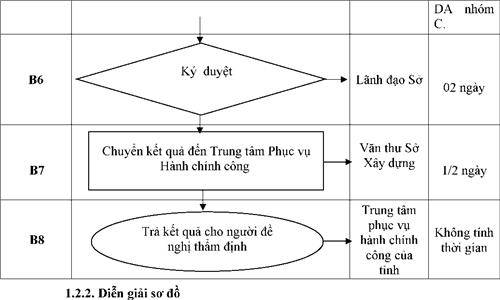 - Chuyên viên Phòng quản lý nhà được giao thụ lý hồ sơ tổng hợp và soạn kết quả thẩm định báo cáo Trưởng phòng xem xét để trình lãnh đạo Sở ký duyệt 5 ngày làm việc.