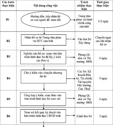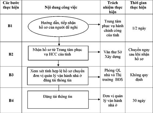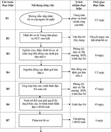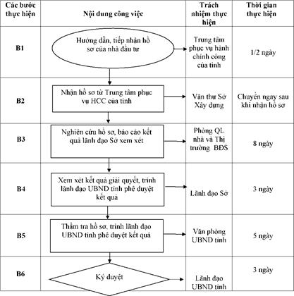 - Lãnh đạo Sở xem xét kết quả giải quyết của phòng Quản lý nhà và thị trường bất động sản ký trình lãnh đạo UBND tỉnh.