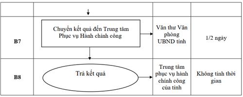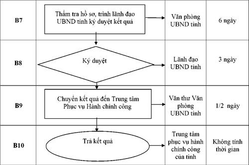 - Văn phòng UBND tỉnh thẩm tra hồ sơ trong thời hạn 07 ngày làm việc trình lãnh đạo UBND tỉnh phê duyệt.