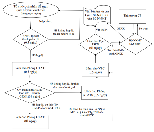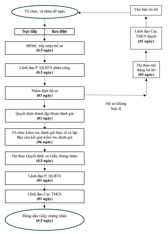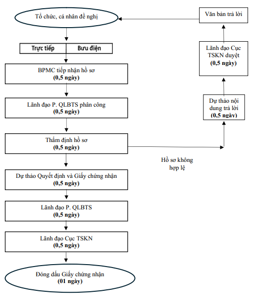 - Chuyên viên trực tiếp xử lý hồ sơ/Lãnh đạo P. QLBTS: 0,5 ngày;