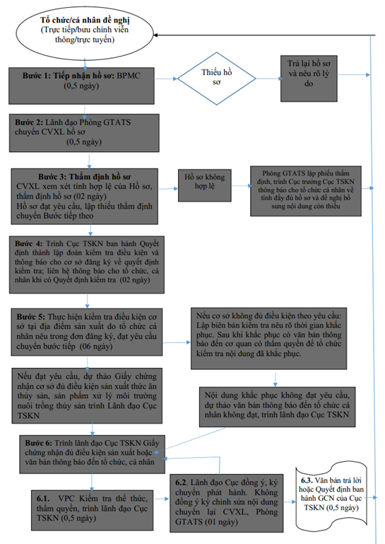- Phòng GTATS là đơn vị xử lý trực tiếp Hồ sơ cấp Giấy chứng nhận đủ điều kiện sản xuất, ương dưỡng giống thủy sản, chịu trách nhiệm toàn diện về pháp lý của Hồ sơ và nội dung Quyết định, Giấy chứng nhận đủ điều kện.