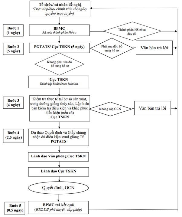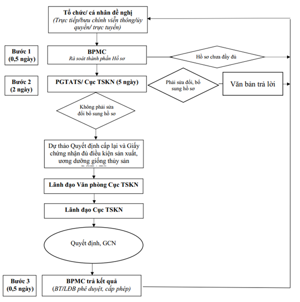 1. Trường hợp Cấp giấy chứng nhận đủ điều kiện sản xuất, ương dưỡng giống thủy sản (cấp mới)