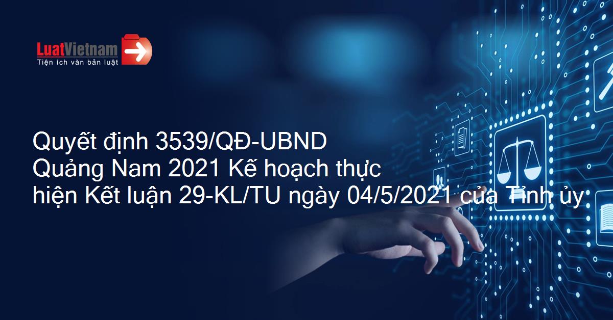 Quyết định 3539/QĐ-UBND Quảng Nam 2021 Kế hoạch thực hiện Kết luận 29-KL/TU ngày 04/5/2021 của Tỉnh ủy