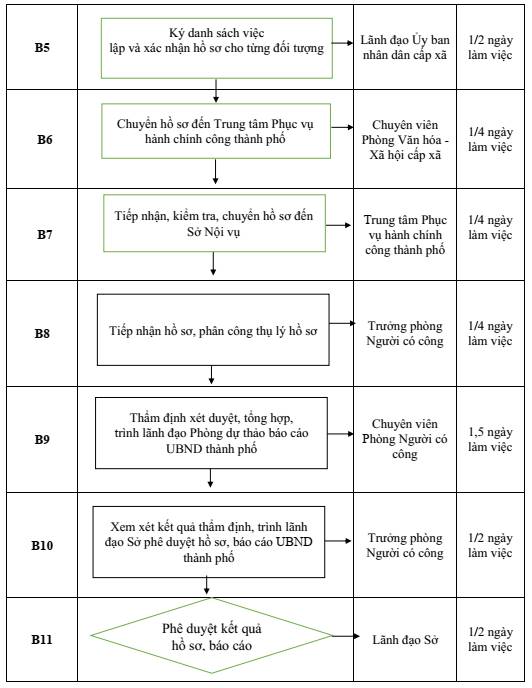 - Lãnh đạo Sở xem xét ký duyệt kết quả thẩm định của Phòng Người có công, báo cáo UBND thành phố: Thời gian thực hiện 1/2 ngày làm việc.