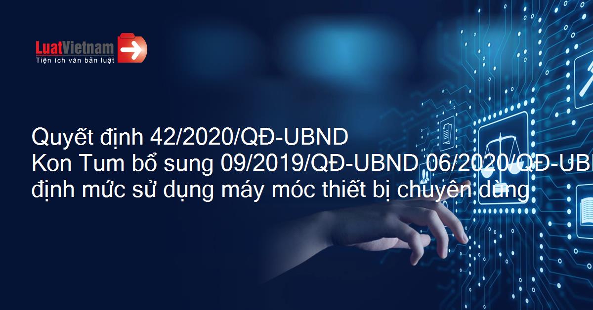 Quyết định 42/2020/QĐ-UBND Kon Tum bổ sung 09/2019/QĐ-UBND 06/2020/QĐ-UBND định mức sử dụng máy móc thiết bị chuyên dùng