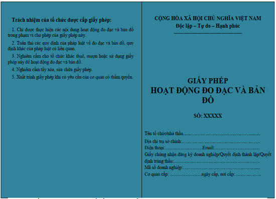 Cấp, bổ sung, gia hạn, cấp lại, cấp đổi giấy phép hoạt động đo đạc và bản đồ |