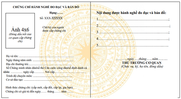 - Đơn đề nghị cấp chứng chỉ hành nghề đo đạc và bản đồ theo Mẫu số 12 Phụ lục IA ban hành kèm theo Nghị định số 39/2026/NĐ-CP, kèm theo 01 ảnh màu cỡ 4x6 cm có nền màu trắng.