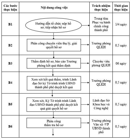 QUY TRÌNH NỘI BỘ GIẢI QUYẾT THỦ TỤC HÀNH CHÍNH THUỘC PHẠM VI, CHỨC NĂNG QUẢN LÝ CỦA SỞ KHOA HỌC VÀ CÔNG NGHỆ