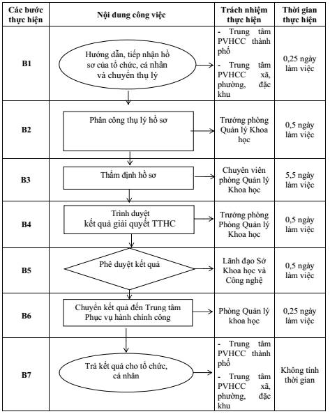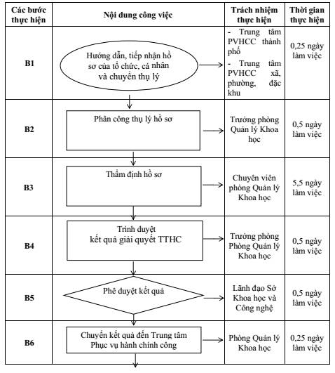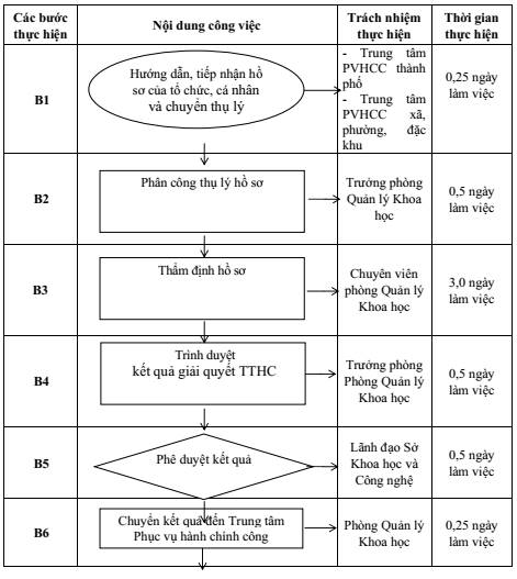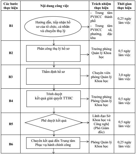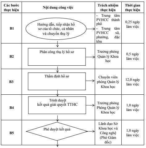 QUY TRÌNH NỘI BỘ GIẢI QUYẾT THỦ TỤC HÀNH CHÍNH THUỘC PHẠM VI, CHỨC NĂNG QUẢN LÝ CỦA SỞ KHOA HỌC VÀ CÔNG NGHỆ