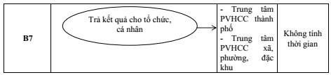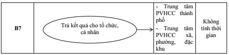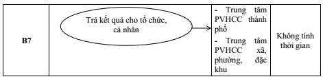 Bộ phận trả kết quả Trung tâm Phục vụ hành chính công thành phố kiểm tra kết quả điện tử và kết quả giấy, trường hợp đảm bảo đúng quy định thực hiện xác nhận tiến hành trả kết quả cho tổ chức, cá nhân trực tiếp hoặc qua dịch vụ bưu chính công ích. Trường hợp kết quả giải quyết không đảm bảo đúng quy định chuyển trả lại chuyển trả lại Văn phòng Ủy ban nhân dân thành phố hoàn thiện kết quả giải quyết theo quy định, sau khi hoàn thiện kết quả giải quyết thực hiện số hóa, chuyển đến Trung tâm phục vụ hành chính công trả kết quả cho tổ chức, cá nhân.
