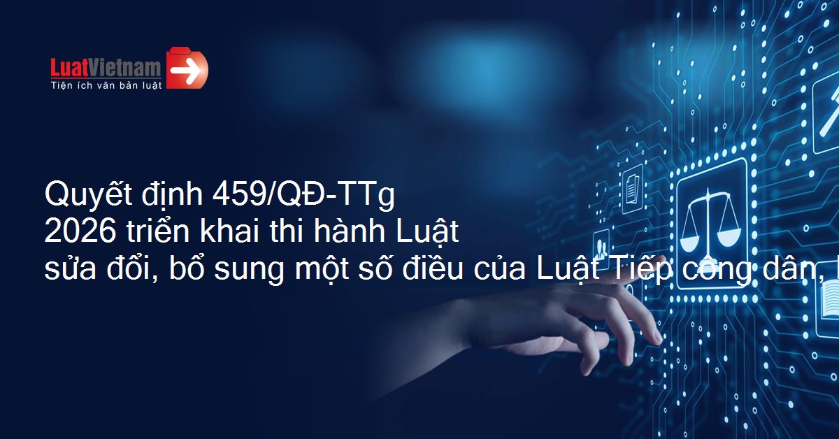 Quyết định 459/QĐ-TTg 2026 triển khai thi hành Luật sửa đổi, bổ sung một số điều của Luật Tiếp công dân, Luật Khiếu nại, Luật Tố cáo và Luật Phòng, chống tham nhũng