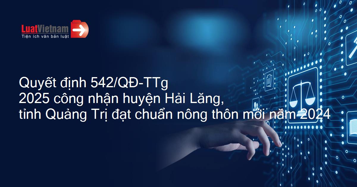 Quyết định 542/QĐ-TTg 2025 công nhận huyện Hải Lăng, tỉnh Quảng Trị đạt chuẩn nông thôn mới năm 2024