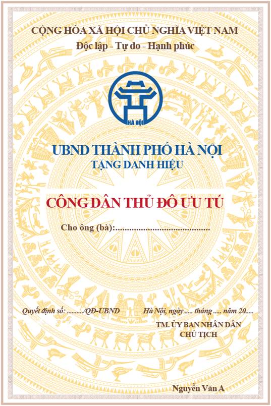 Mẫu Bằng công nhận danh hiệu “Công dân Thủ đô ưu tú”