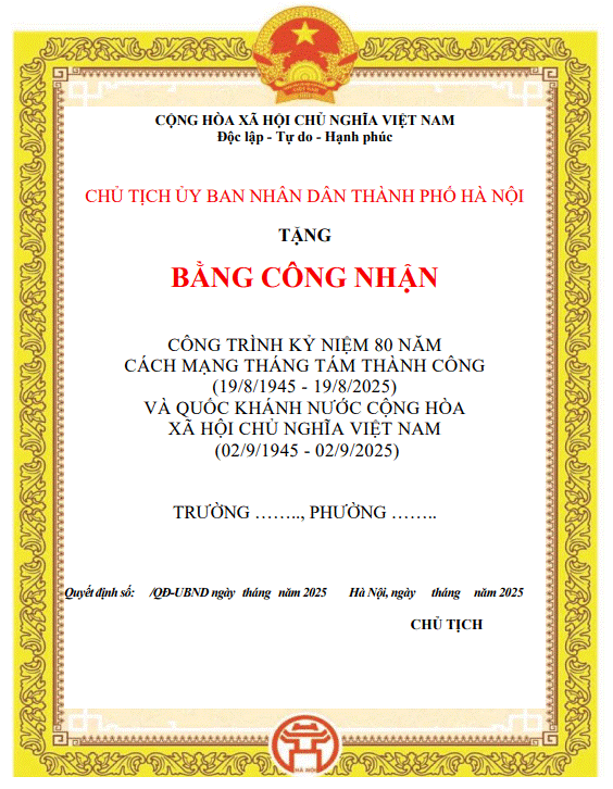 MẪU BẰNG CÔNG NHẬN CÔNG TRÌNH KỶ NIỆM