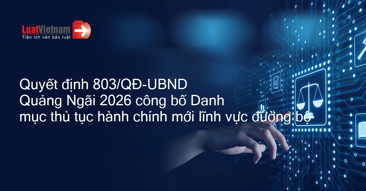 Quyết định 803/QĐ-UBND Quảng Ngãi 2026 công bố Danh mục thủ tục hành chính mới lĩnh vực đường bộ