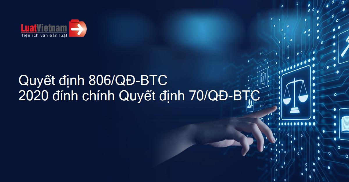Quyết định 806/QĐ-BTC 2020 đính chính Quyết định 70/QĐ-BTC