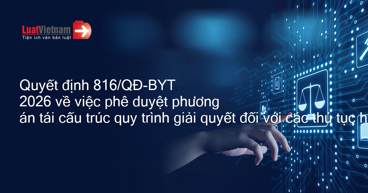 Quyết định 816/QĐ-BYT 2026 về việc phê duyệt phương án tái cấu trúc quy trình giải quyết đối với các thủ tục hành chính lĩnh vực dược, mỹ phẩm